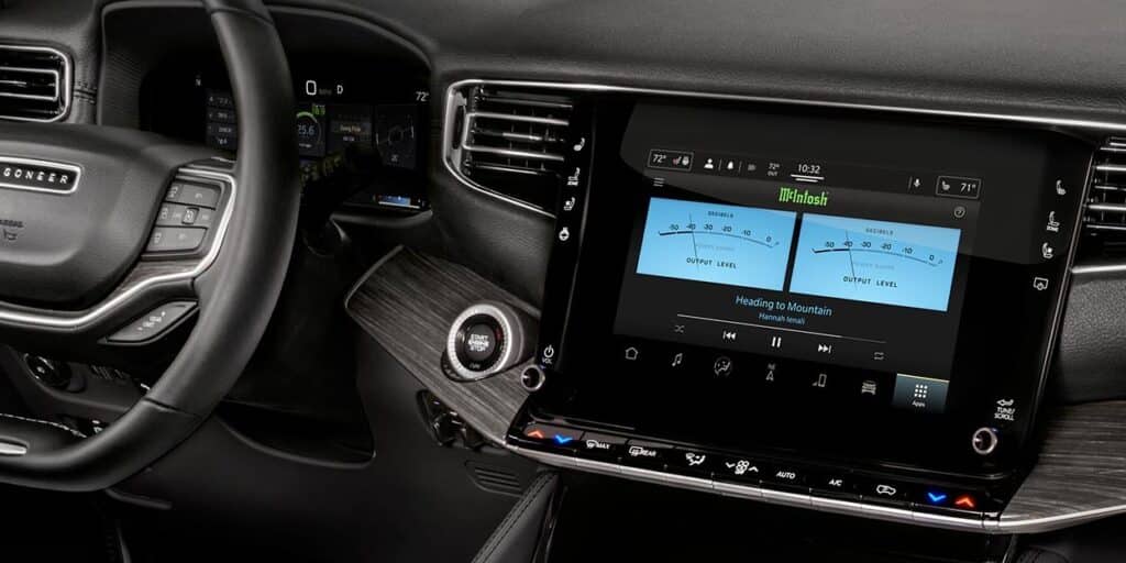 The Wagoneer, when equipped with the Heavy‑Duty Trailer Tow Package, has the foundation and the power to boast Best‑In‑Class towing capacity of up to 4,535 kg (10,000 lb). That’s enough to easily tow a typical 9 metre, 2‑axle travel trailer, or a large 8 metre, centre console boat. Included with the package is an electronic limited slip rear differential and integrated trailer brake controller.