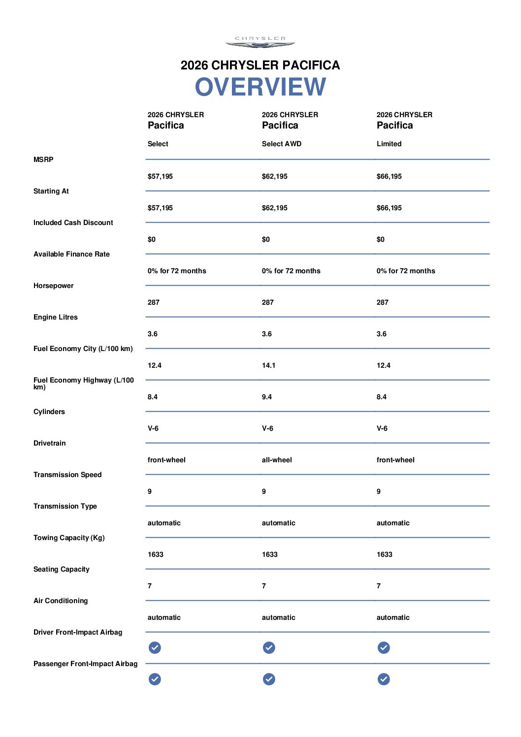 The 2026 Chrysler Pacifica offers available all-wheel drive with 287 hp that automatically shifts 262 lb–ft of torque for added traction, improved grip, and more control when the road demands it.