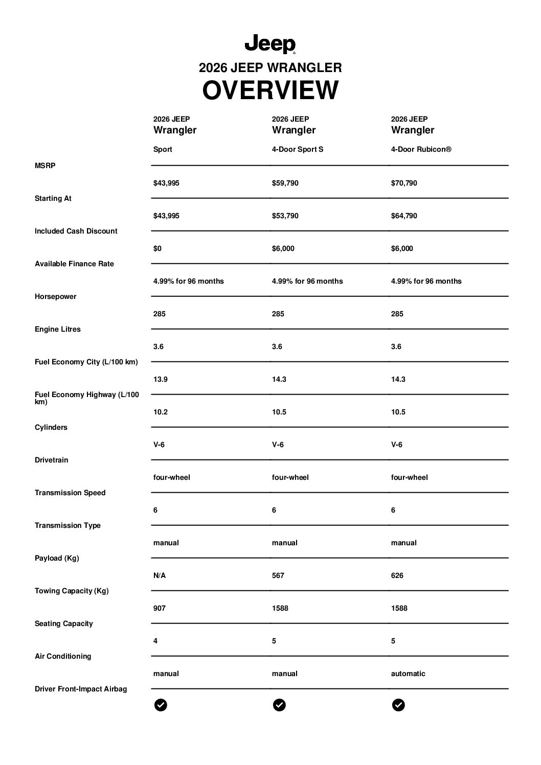 Grip Your Way To The Top Roll the way you want with customizable wheel options available for the 2026 Jeep® Wrangler. Designed for every type of journey, choose options from 17‑inch or 18‑inch wheels.