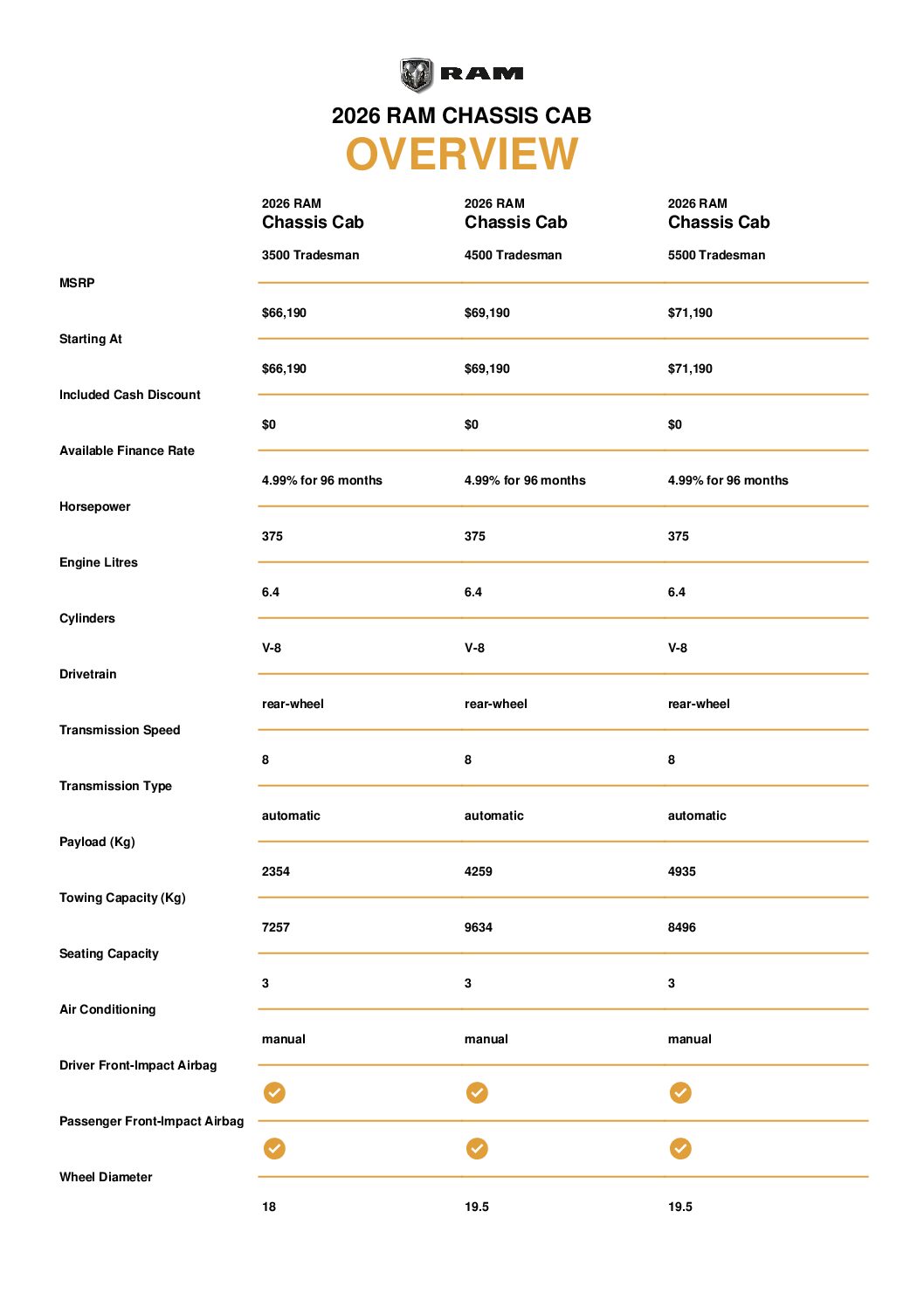 The Chassis Cab is built for efficient performance, offering features like FuelSaver Multi Displacement Technology, Variable Valve Timing, Tow/Haul modes, Electronic Range Selection and the Class Exclusive available Electronic Front Axle Disconnect.